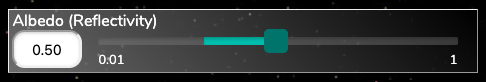After creating Earth in the Build a Planet simulator (as above), increase the albedo to 0.5 as shown on the right.