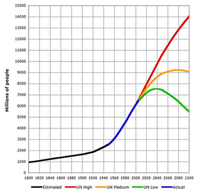 According to UN projections, the global population will reach 9 to 10 billion by the end of this century and remain at that level for the foreseeable future. Up until the mid-20th century, global population was almost exclusively experiencing positive feedback. However, a slowing in the growth rate has been observed, indicating the possible presence of some negative feedback. At the moment we may approaching our carrying capacity, where the sheer number of humans on earth has a negative impact on our ability to keep increasing our numbers. Populations exhibit natural feedback cycles in which there are both positive and negative influences on the population as a result of the population.