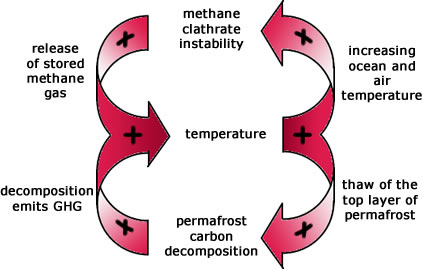 At the moment, the buffering action of carbon sinks has acted to moderate the climate change caused by anthropogenic emissions. However, at some point, increasing global average temperatures could trigger the positive feedback loops of the carbon cycle and begin amplifying climate change.