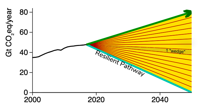 Note: The concept of using wedges to show incremental wedges as steps to reduce carbon dioxide emissions was first developed by the Carbon Mitigation Initiative.